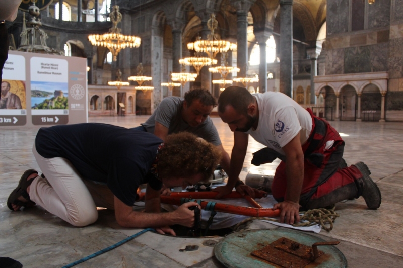 Bahçede görüntülenen son yeraltı yapısının girişinde molozlar arasında yer alan ve alt kısmı olmayan Osmanlı mezar taşının ise dikkat çektiğini söyleyen Doç. Dr. Hasan Fırat Diker, araştırmanın belgelenen mekânların temizlenmesine ve yapının daha rahat nefes almasına vesile olacağı belirterek, “Ayasofya’nın altyapısı anlaşılmadan üstyapıya yönelik tüm çalışmaların eksik kalacağını düşünüyoruz. Altyapısıyla beraber değerlendirildiğinde Ayasofya’nın mevcut rutubet sorununun önüne geçilecek, böylece yapının daha rahat nefes alıp vermesi mümkün olacaktır.” değerlendirmesinde bulundu.