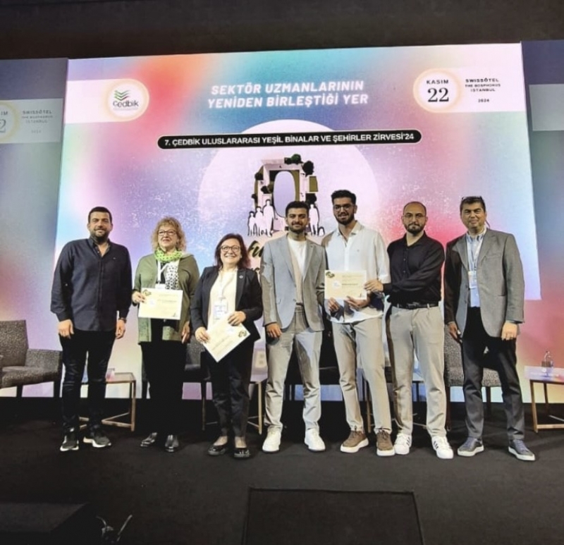 ÇEDBİK Sürdürülebilirlik Fikir Yarışması 2024 - Yaşam Alanı Tasarımı kategorisinde birincilik ödülü kazanan Mimarlık Bölümü öğrencilerimiz Yahya Kemal Erdem (ekip başı), Muhammet Fatih Kol ve Uğur Çelik, ödüllerini Swissotel’de düzenlenen törenle aldılar. Başarılarıyla bizleri gururlandıran öğrencilerimizi tebrik ediyoruz.