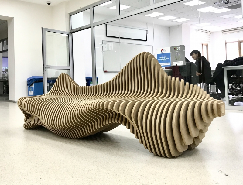 Doç. Dr. Aslı Ağırbaş yürütücülüğündeki lisans seçmeli dersi kapsamında “Parametrik Bank” üretildi. “Parametrik bank”, Haliç Yerleşkesi, D Blok stüdyo katında sergilenmektedir.