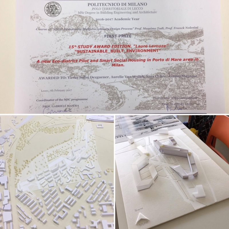 Lecco Manzoni Rotary Klübü'nün sponsorluğunda düzenlenen ve ekibin "Porto di Mare ekolojik bölgesinde Master Plan ve Sürdürülebilir Sosyal Konut Projesi" başlıklı tasarımla katıldıkları yarışmada juri değerlendirmesi ve ödül töreni 7 Şubat 2017 tarihinde gerçekleştirildi: