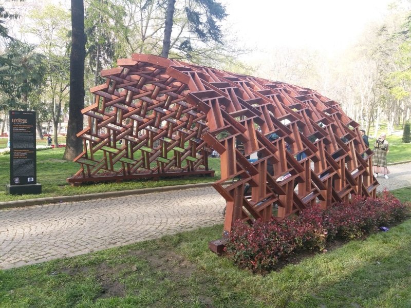 Mimarlık Yüksek Lisans programı mezunlarımızdan Zehra KARAKOÇ İstanbul Yeditepe Bienaline “Geometrik desenlerden taşıyıcı kaburgalara” temalı tasarımıyla katılmıştır. Mezunumuzun “Mekândan Taşanlar” isimli tasarımı Gülhane Parkında Zehra KARAKOÇ ve Mimarlık Bölümü mezunlarımızdan Emir Abdülkerim ALBAN tarafından inşâ edilmiştir. Bir geçit formunda tasarlanan bu projede, 14.yy a ait bir İslami geometrik desen kuralı, taşıyıcı kaburga sistemine entegre edilmiştir.
